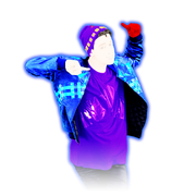 The dancer is a teenage boy. He is wearing a purple beanie with yellow dotted lines on it, has black hair, a purple top, a dark blue jacket with light blue triangles and hashtags, a red glove, black pants, and pink and yellow sneakers. He has a blue outline.